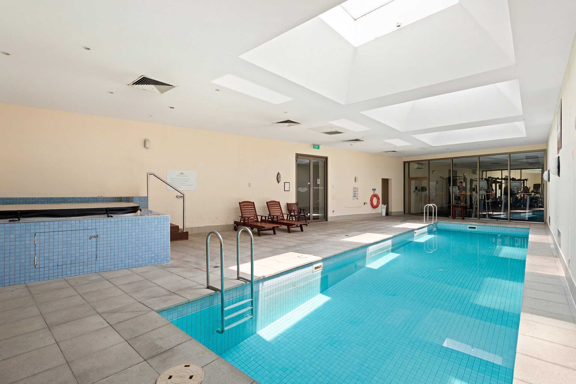 Positioned within a quality building featuring resort-style amenities including a gym, swimming pool and sauna, the space immediately stands apart thanks to its generous scale and thoughtful layout.