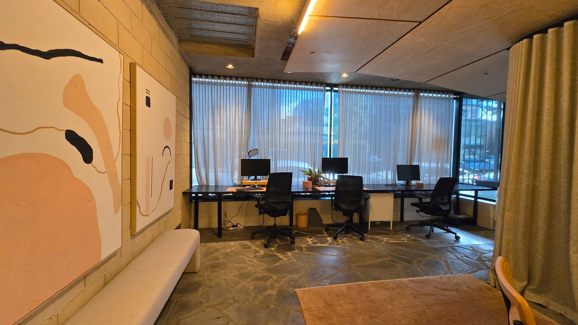 Comprising approximately 35m² of lettable area, the property features a spacious and functional layout, complete with a private kitchenette and bathroom amenities. Large street-facing glass windows allow abundant natural light to fill the space, creating a bright and welcoming working environment.