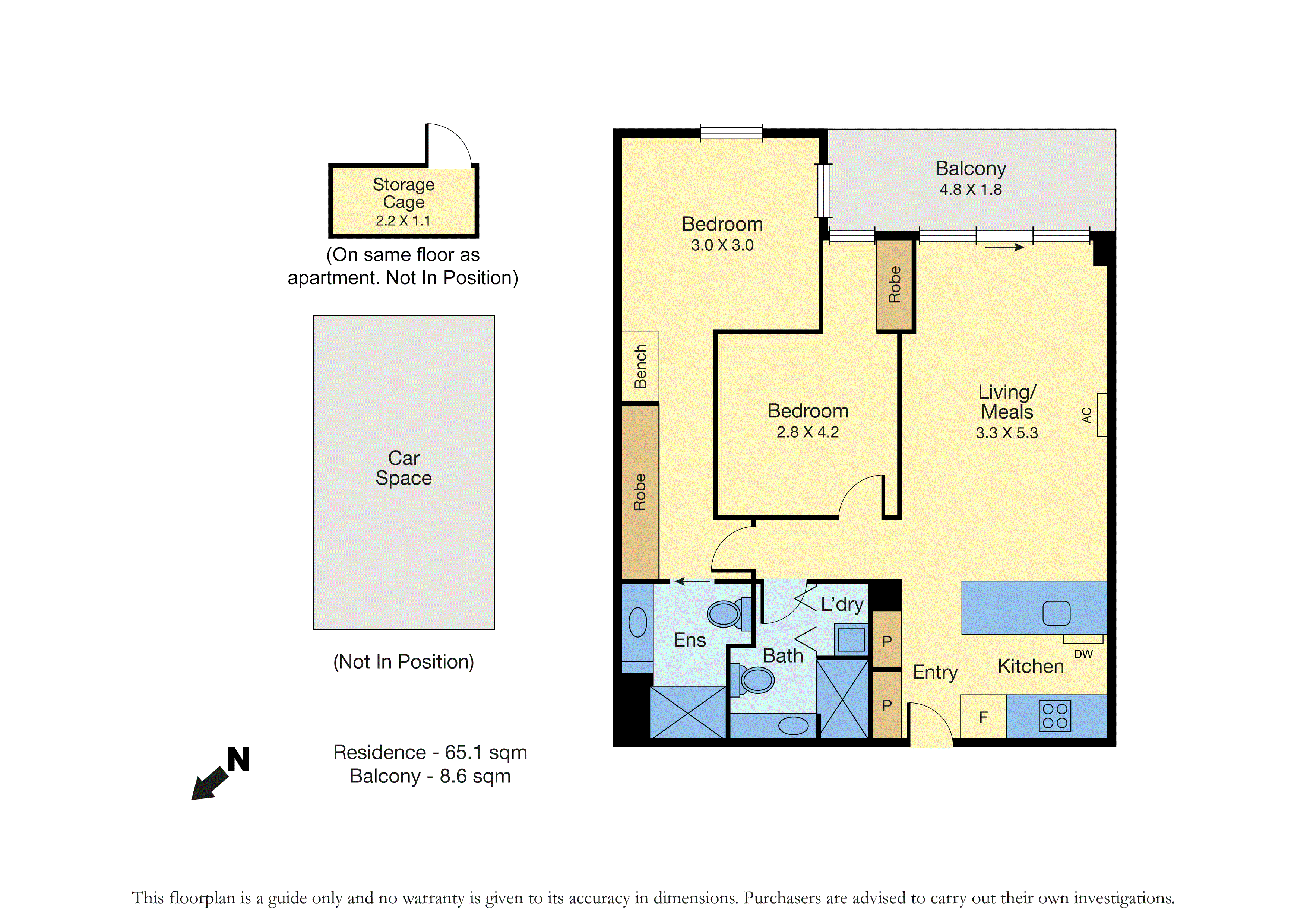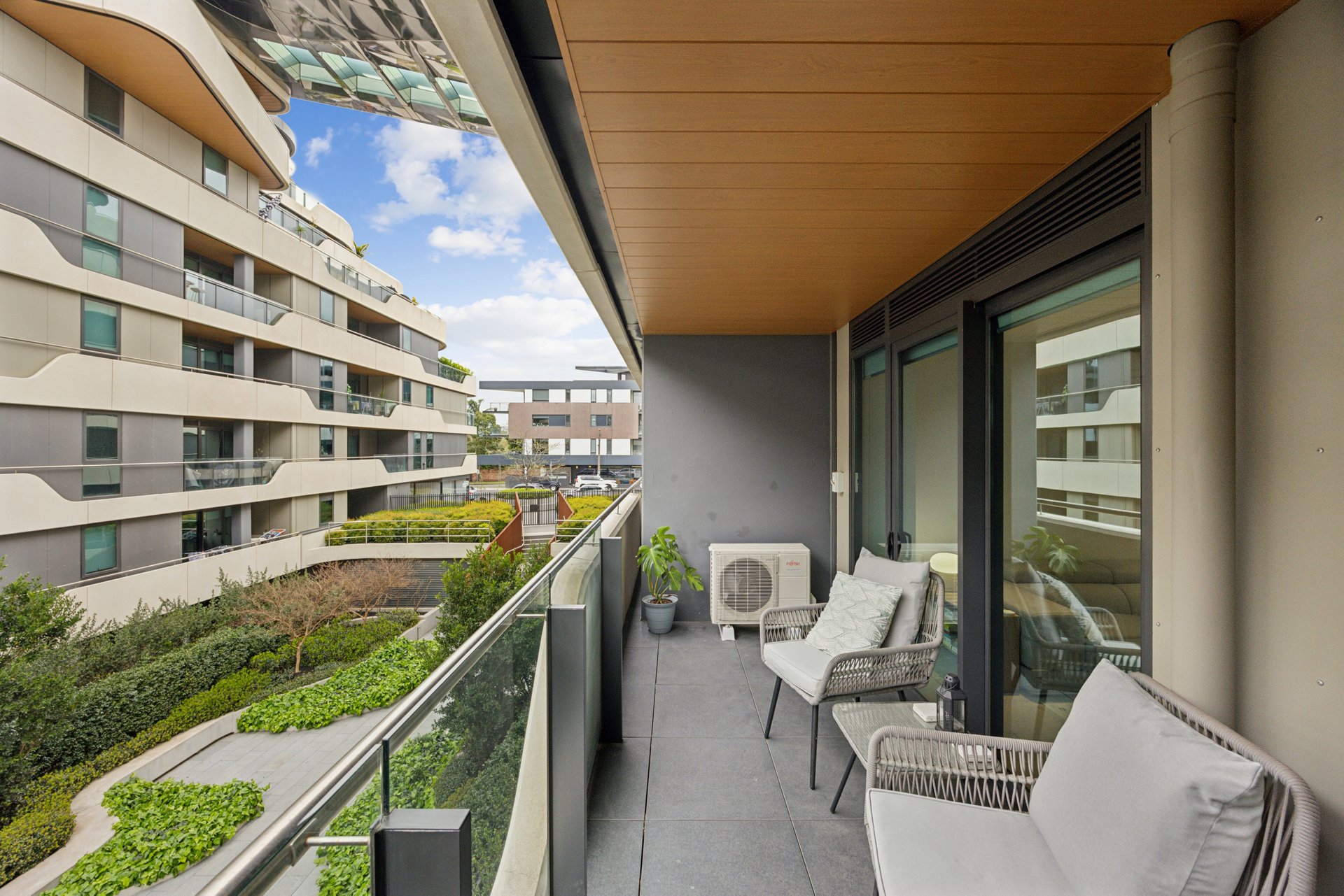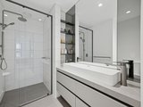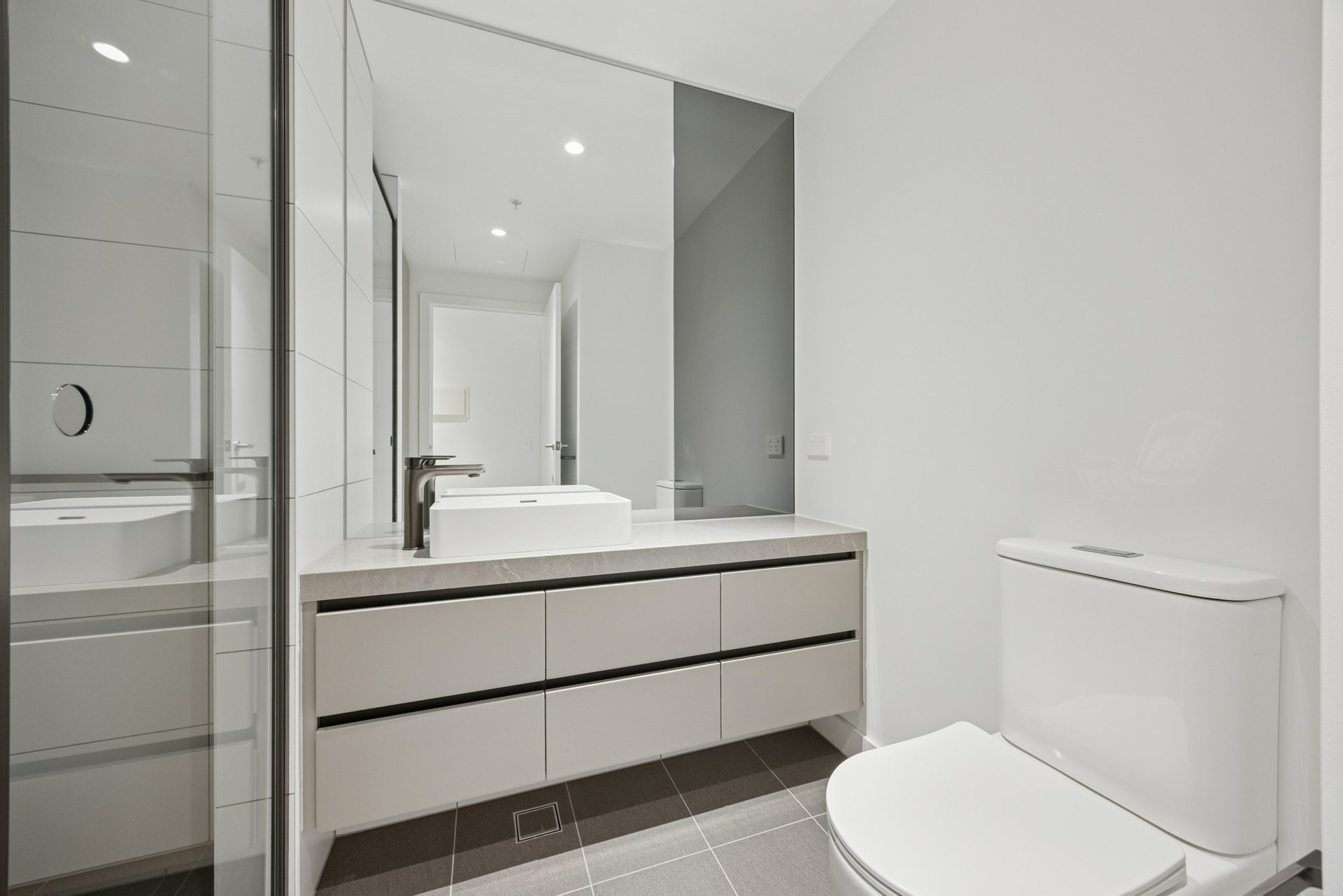 The kitchen is sleek with stone finishes, integrated dishwasher, provision for a concealed fridge, breakfast bar and good storage. Two bedrooms give you choice, the main with an ensuite and a fitted desk for those work-from-home days that need focus. The second bedroom sits near another bathroom. Add split-system heating and cooling, a European laundry, built-in bedroom robes, video-monitored security, secure basement parking, and a storage cage on the same level, and the details are complete.